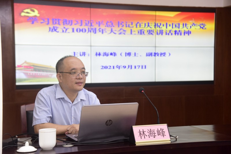 9月17日上午,我院邀请市委宣讲团成员林海峰同志到我院开展学习贯彻习近平总书记在“七一”重要讲话精神专题宣讲报告