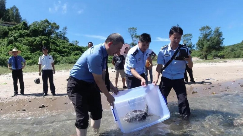 会后,江城区检察院联合阳江市公安局江城分局、江城区农业农村和水务局,将在一起非法收购频危野生动物案中缴获的一只价值五万元的国家二级水生动物野生海龟放归大海。