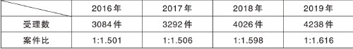 一审公诉案件受理数与“案-件比”(表二)