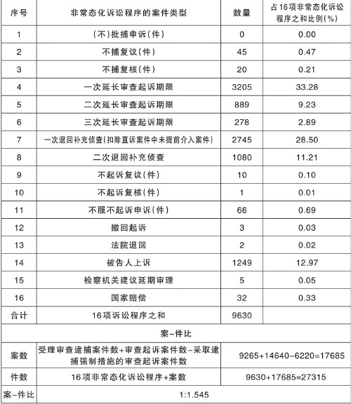 “案-件比”适用于刑事、民事、行政等各项检察业务。以刑事检察为例,在刑事诉讼活动中,正常批准逮捕(不批准逮捕)、提起公诉(不提起公诉)、一审判决三个程序属于常态化程序,由之衍生或关联的、会给当事人带来负面感受的批捕(不批捕)申诉、不捕复议、不捕复核、一次延长审查起诉期限、二次延长审查起诉期限、三次延长审查起诉期限、一次退回补充侦查、二次退回补充侦查、不起诉复议、不起诉复核、不起诉申诉、撤回起诉、法院退回、被告人上诉、检察机关建议延期审理、国家赔偿等16项诉讼程序均属非常态化、非必经程序。刑事案件在常态化程序内结束、案结事了,其他衍生或关联程序均不发生,就能实现办案质效最高、司法资源投入最少、当事人感受最好、“三个效果”最优。