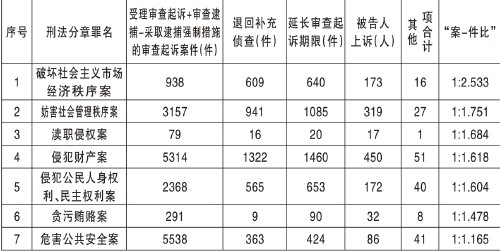 刑事检察“案-件比”构成情况(表一):